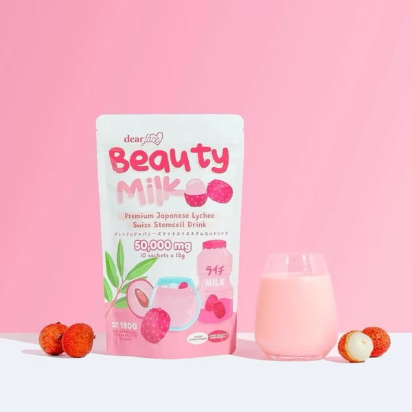 Beauty Milk Lychee drink is a delicious and innovative formula for your daily beauty ritual. This premium drink blends extracts from Swiss Apple and Grapes with Pure Bio Swiss Marine Collagen.